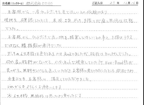 施工された 株式会社ヒロオカ 様から、お客様の声を頂きました。