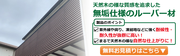 強度・施工性が抜群の無垢仕様なので、ルーバー材としてだけではなく濡れ縁や縦格子などにも使用ができる優れものです。