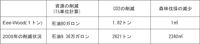 「Eee-Wood」は、電化製廃棄物や、木屑など、リサイクル資源を原料を再利用しています。